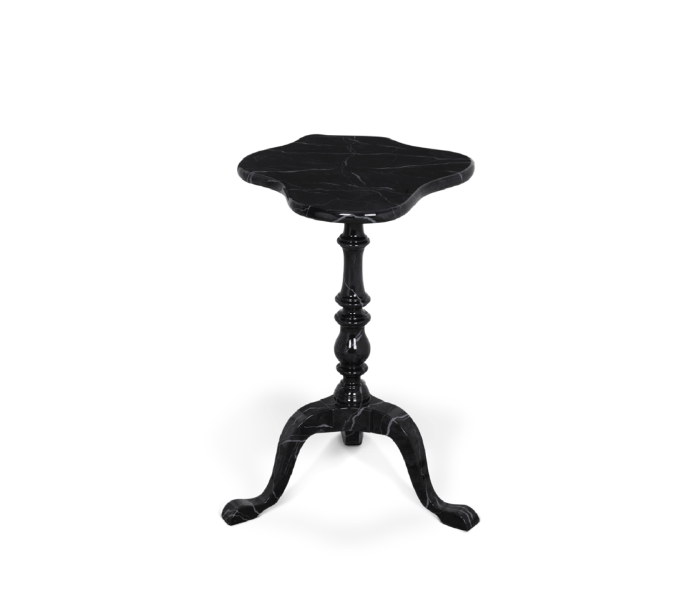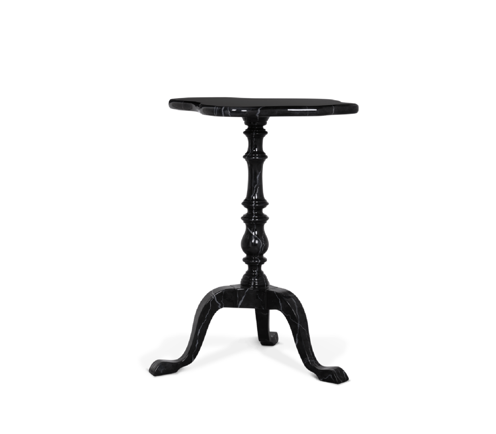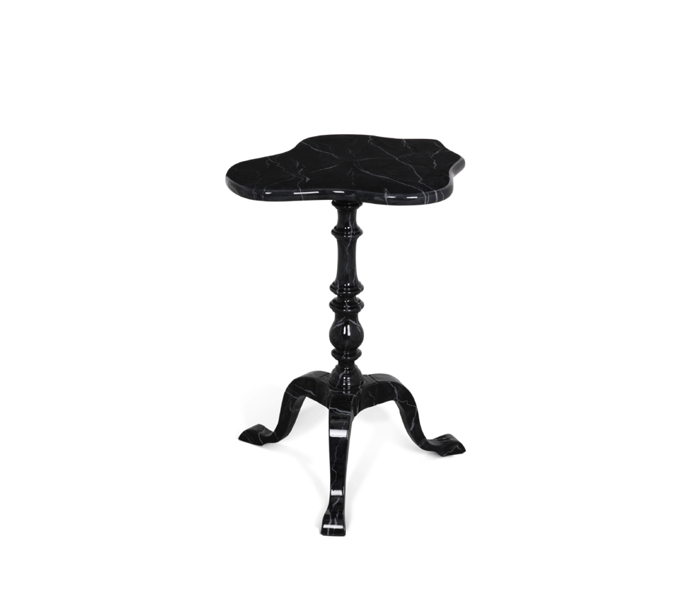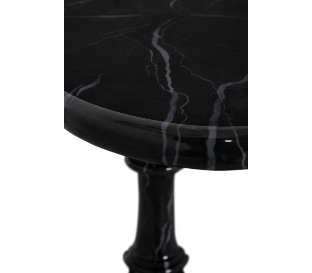 Table in wood, with a twisted column ending on tripod feet. Delicately carved and handpainted in faux-marble.